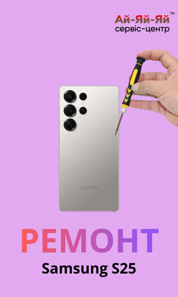 Ремонт Samsung S25 и цены на него указаны на сайте сервис-центра Ай-Яй-Яй. Мы регулярно анализируем рынок в Киеве и предлагаем ремонт Самсунг С25 по выгодной стоимости. Обслуживание доступно не только в столице, но и по всей Украине — отправка устройств осуществляется через Новую Почту. Если вам нужен ремонт других моделей, вы можете ознакомиться с ремонтом Samsung Galaxy S24, а также посмотреть варианты ремонта Xiaomi 12T Pro или воспользоваться услугой ремонта Google Pixel 7 Pro.Замена стекла на Samsung S25. Чем отличается от замены дисплея?