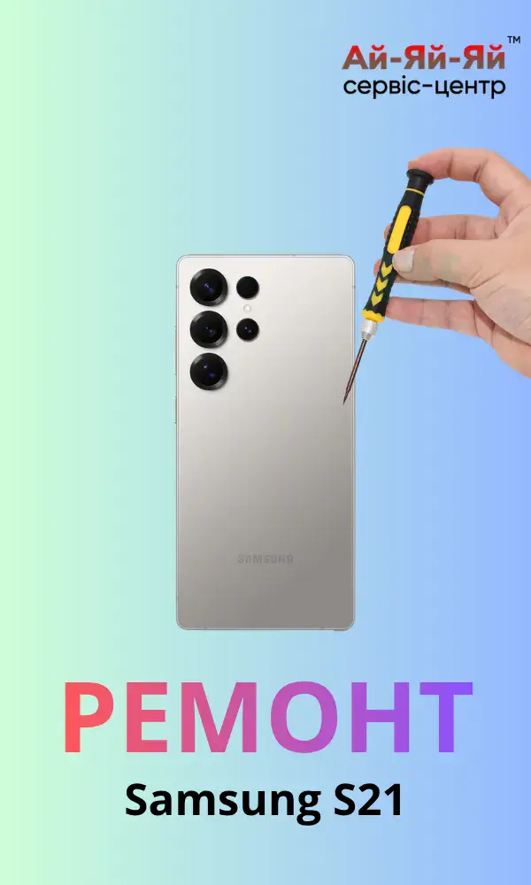 Ремонт Samsung S21 і ціни на нього зафіксовані на сайті сервіс-центру Ай-Яй-Яй. Ми стежимо за ціноутворенням у Києві та пропонуємо ремонт Самсунг С21 за вигідною ціною не тільки в столиці, а й по всій Україні. Наш сервіс-центр обслуговує клієнтів з усіх регіонів через доставку Новою Поштою, що дозволяє швидко відновити пристрій.